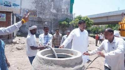 सुपर सकर मशीन द्वारा लगातार चौथे दिन तानसेन नगर में सीवर सफाई कार्य जारी