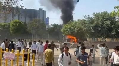 नोएडा में बवाल: वेतन बढ़ाने की मांग पर उग्र हुए श्रमिक, पुलिस जीप समेत 5 गाड़ियां फूंकी