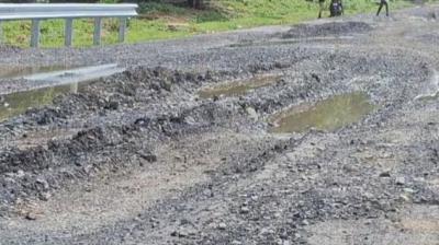 NH-39 पर सड़क धंसने से राहगीर परेशान, सुरंग जैसी खाई बनी बड़ा खतरा