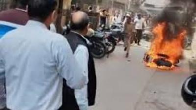 जिला न्यायालय के पास चलती बाइक बनी आग का गोला, मचा हड़कंप