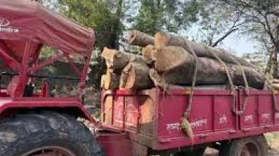 सागौन-हल्दू लकड़ी से भरा ट्रैक्टर जब्त, वन विकास निगम की कार्रवाई