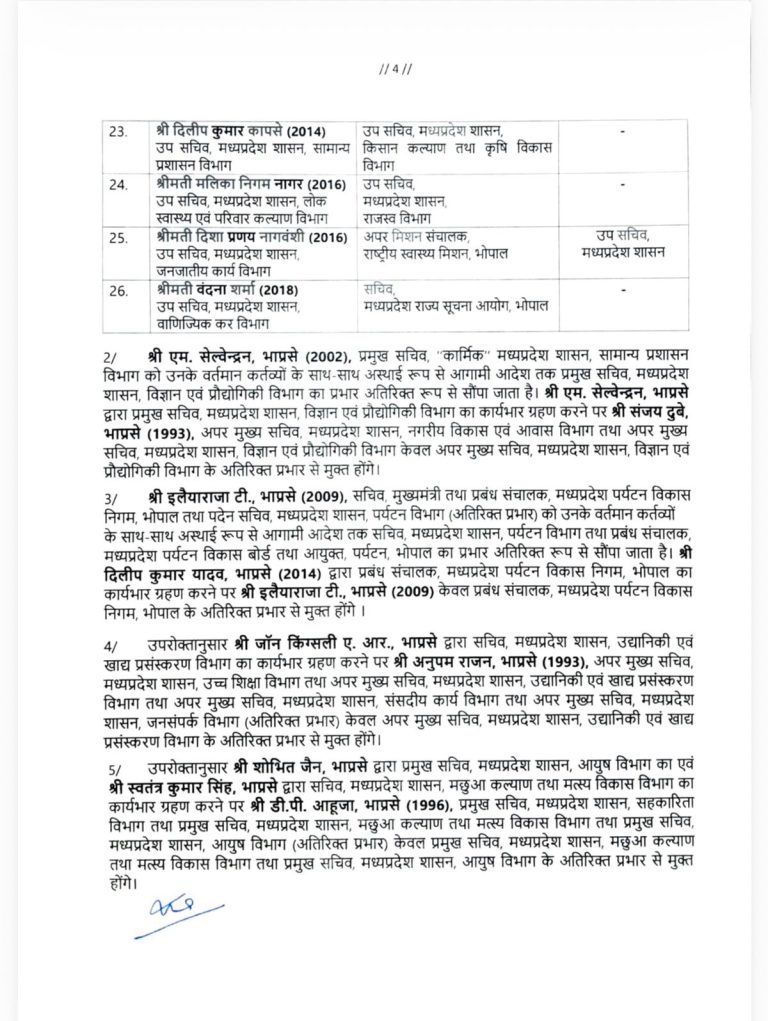 MP में बड़ा प्रशासनिक फेरबदल, 26 वरिष्ठ IAS अधिकारियों के हुए तबादले, इलैयाराजा टी को पर्यटन विभाग की कमान