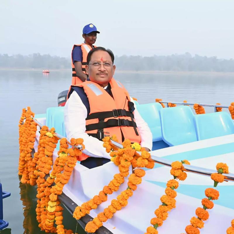 CM साय ने नारायणपुर के शांत सरोवर में किया नौका विहार और छात्रों से किया संवाद