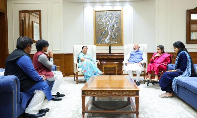 पूरे परिवार के साथ पीएम मोदी से भेंट की पूर्व मुख्यमंत्री वसुंधरा राजे ने